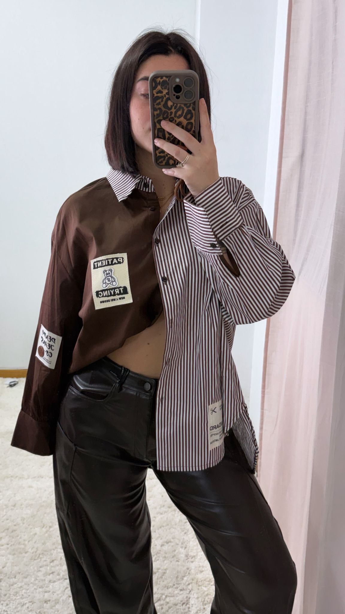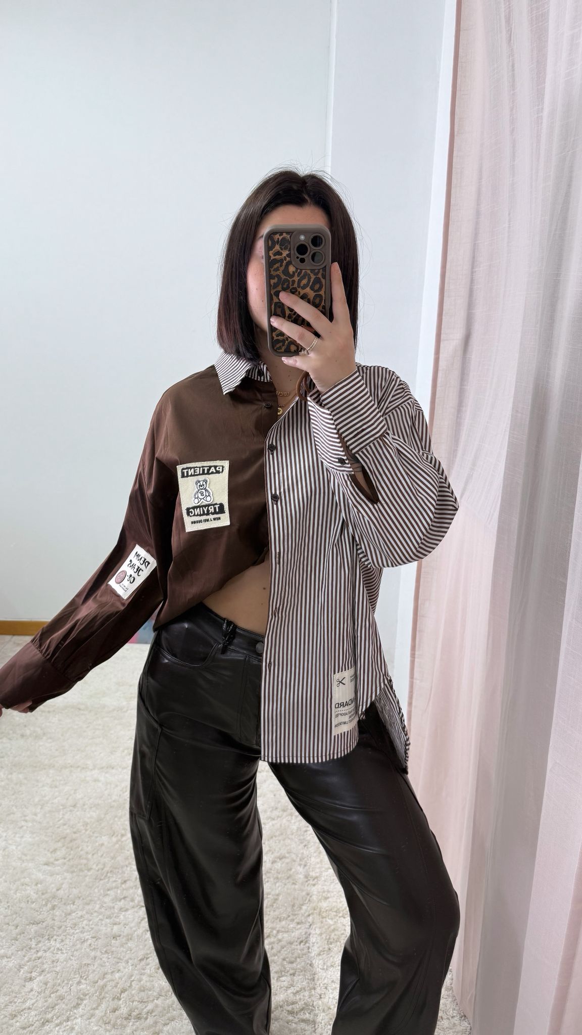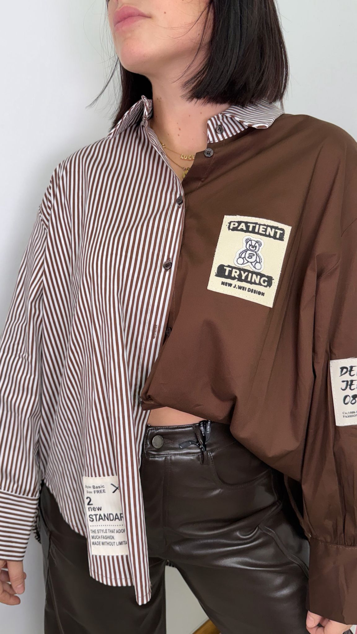 / Camisa chocolate y rallas blancas