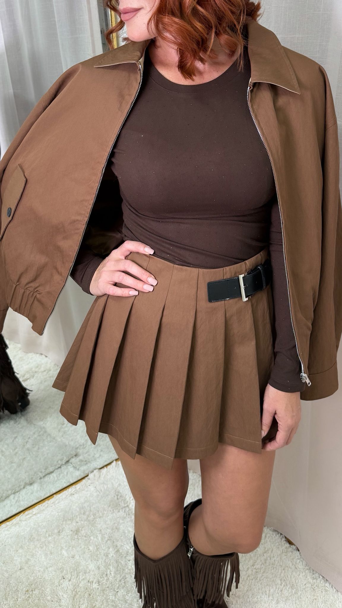 / Falda Lumina de palas marrón y broche a un lado tallas