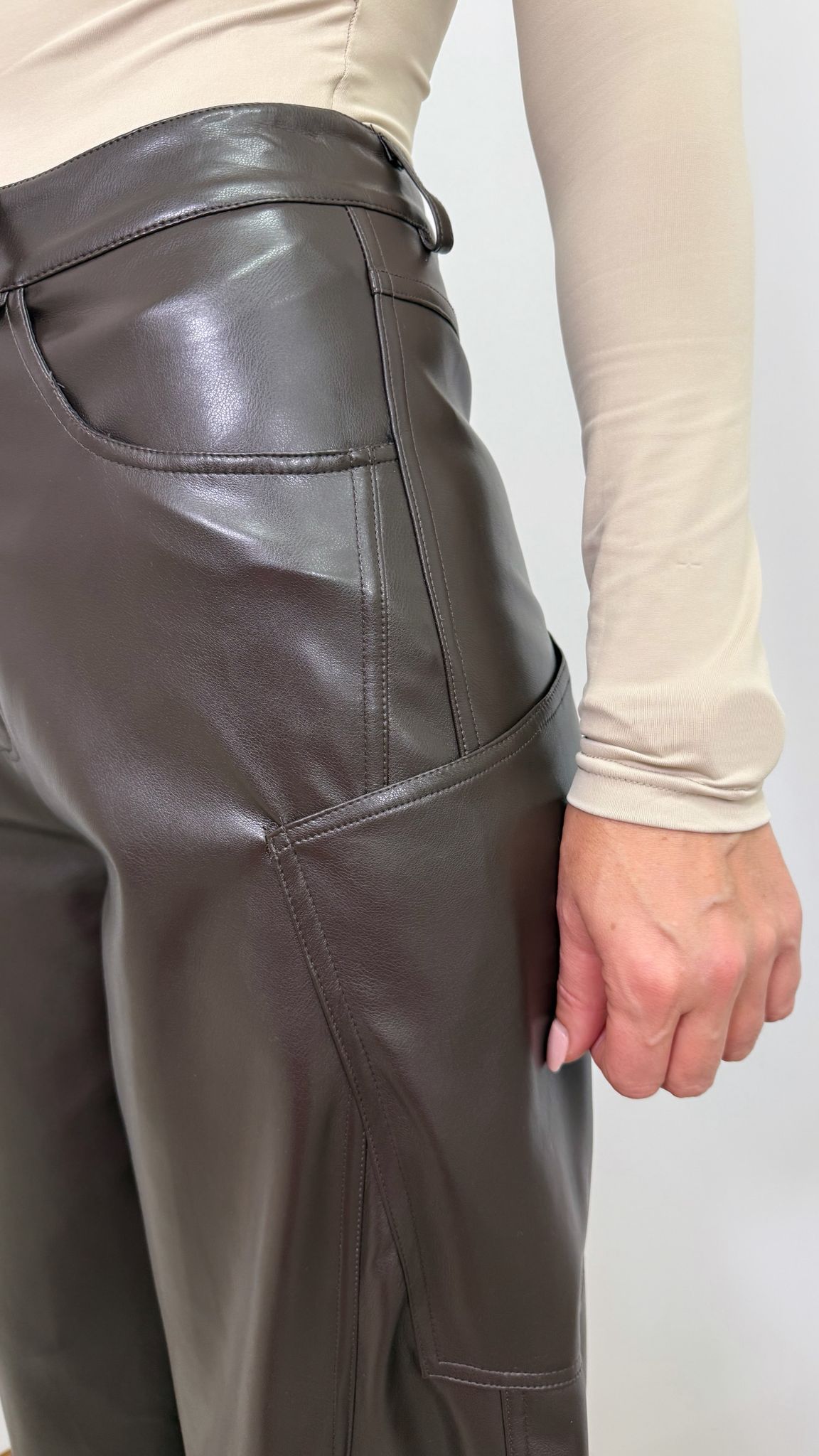 / Pantalón Lumina cargo poli piel forrado por dentro, color chocolate